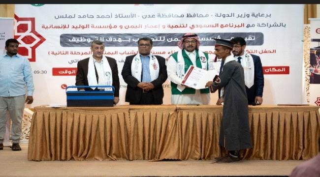 اُختتمَ اليوم في محافظة عدن برنامج «بناء المستقبل للشباب اليمني»، وذلك بتخريج ٦٨٧ شاب وشابة، والذي يأتي بتمويل من البرنامج السعودي لتنمية وإعمار اليمن ومؤسسة الوليد الإنسانية، وتنفيذ مؤسسة اليمن للتدريب بهدف التوظيف، وذلك في 3 مسارات تتضمن: التدريب بهدف التوظيف، والتوظيف الذاتي، ومسارات العمل.