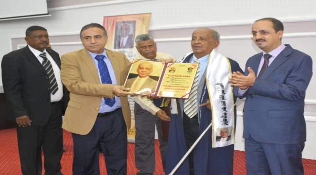 حاز الدكتور والفنان الوطني الثائر، محمد محسن عطروش، اليوم الأربعاء، على شهادة الدكتوراه الفخرية الممنوحة من جامعة عدن، نظير خدماته الجليلة للوطن خلال مسيرته الفنية، في حفل تكريمي بهيج أقامته الجامعة بقاعة "ابن خلدون" بكلية الآداب" بمدينة خور مكسر، بحضور معالي الدكتور، الخضر ناصر لصور، رئيس الجامعة، ومعالي وزير الإعلام والثقافة والسياحة، معمّر الإرياني، وعدد من نواب الوزراء ووكلاء المحافظات وأعضاء البرلمان وشخصيات أكاديمية واجتماعية، إضافة إلى المئات من محبي الفنان.
