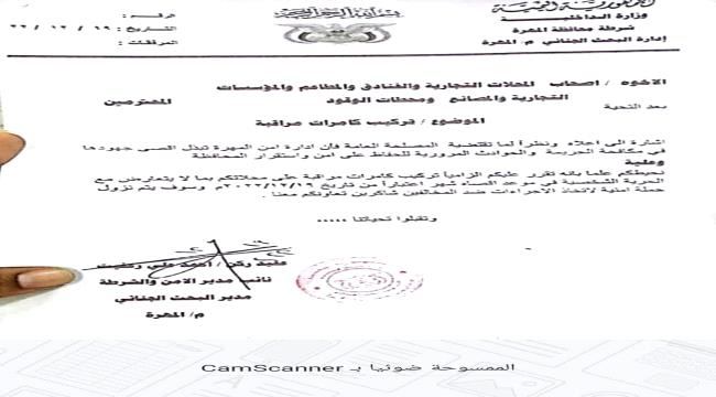 حملة أمنية لمراقبة تنفيذ قرار تركيب كاميرات مراقبة في المحلات والفنادق والمؤسسات بالغيضة