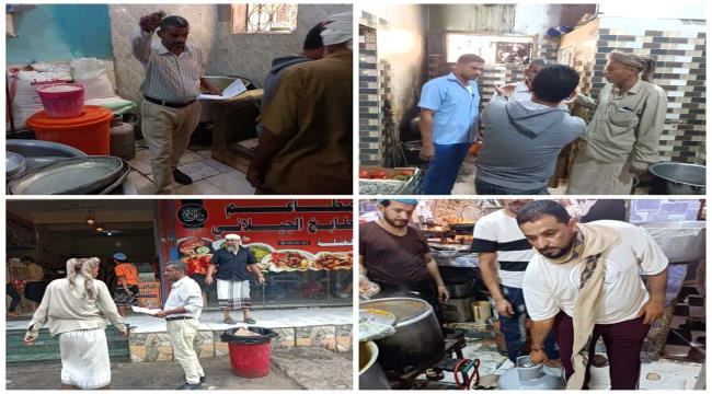 عدن: مكتب الصناعة والتجارة في البريقة يواصل حملاته الرقابية على المطاعم