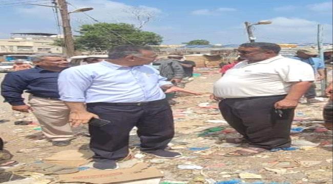 تفقد الاستاذ عبدالرحيم جاوي مدير عام مديرية المعلا حملة إزالة هياكل السيارات في سوق القات بالمديرية.