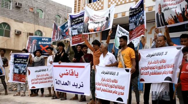نفذ عدد من موظفي مستشفى الصداقة وقفة إحتجاجية أمام مبنى المحكمة الإدارية بمديرية خور مكسر بسبب إقصائهم وتجميد رواتبهم وكافة مستحقاتهم من قبل مدير عام مستشفى الصداقة بتحريض من مدير عام مكتب الصحة بعدن.