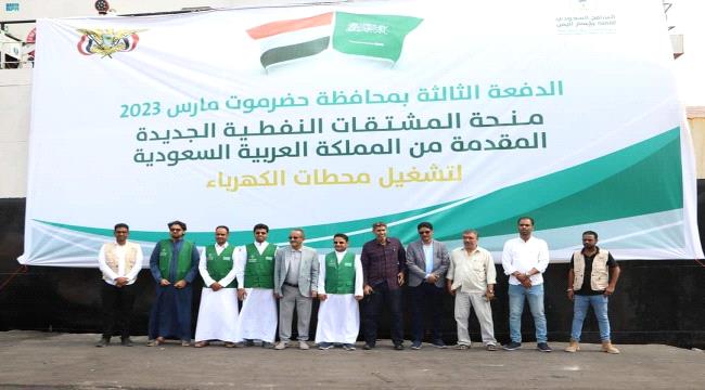 وصلت إلى محافظة حضرموت، الدفعة الثالثة من منحة المشتقات النفطية السعودية الجديدة قادمةً من العاصمة المؤقتة عدن، والمقدمة من المملكة العربية السعودية عبر البرنامج السعودي لتنمية وإعمار اليمن، بكميات بلغت 5500 طناً من مادة الديزل و13,000 طن من مادة المازوت.