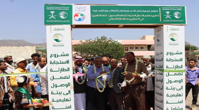 وذلك بحضور مدير عام مكتب التربية والتعليم الأستاذ محسن الحنق، واستهدف المشروع عدد (6) مدارس في محافظة الضالع من خلال إضافة فصول دراسية ، بالإضافة إلى أعمال ترميم وإعادة تأهيل، بتمويل مركز الملك سلمان للإغاثة ، حيث شمل إضافة ثلاثة فصول دراسية في كلاً من : مدرسة عبد الدائم بمنطقة لكمة صلاح، ومدرسة علي قائد القبة بمديرية قعطبة ، ومدرسة عبدالله بن مسعود بمديرية جحاف، فيما شمل المشروع ايضاً تأهيل وإعادة ترميم ثلاث مدارس أخرى هي مدرسة الكبار ومدرسة جلاس ومدرسة السيلاني المشاريح بمديرية الضالع.