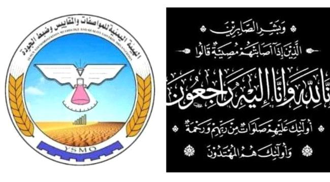 تتقدم قيادة الهيئة اليمنية للمواصفات والمقاييس وضبط الجودة ممثلة بمدير عام الهيئة المهندس/ حديد الماس، ونواب المدير العام وكافة قيادات وكوادر وموظفي الهيئة، بأحر التعازي وعظيم المواساة إلى معالي وزير الخدمة المدنية والتأمينات الدكتور عبدالناصر الوالي ومعالي نائب وزير الصناعة والتجارة المستشار سالم سلمان الوالي بوفاة المناضل الجسور اللواء أحمد محمد حسين الضباعي مدير أمن لحج وعدن الأسبق والشخصية الوطنية البارزة في مرحلة الكفاح المسلح ، الذي وافته المنية بعد حياة حافلة بالعطاء والنضال في خدمة المؤسسة الأمنية والعسكرية والدفاع عن الوطن..