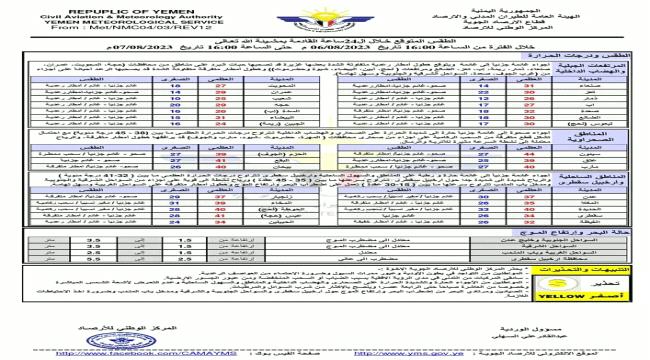خلال الفترة من الساعة 16:00 تاريخ 06/08/2023م حتى الساعة 16:00 تاريخ07/08/2023م