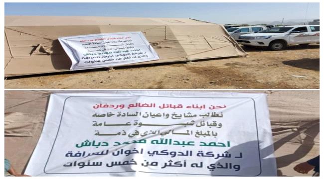 احتشد أبناء قبائل الضالع وردفان، اليوم الخميس، في منطقة بيحان بمحافظة شبوة، للمطالبة بالتحكيم القبلي في قضية المبالغ التي تطالب بها شركة الدوكي للصرافة من أحد أبناء قبيلة السادة بيحان، أحمد عبدالله محمد دباش.