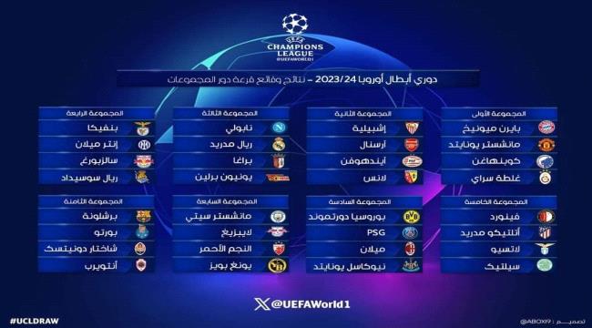 اجري حفل سحب قرعة دور المجموعات لدوري أبطال أوروبا لموسم 2023-2024 مساء اليوم الخميس.
