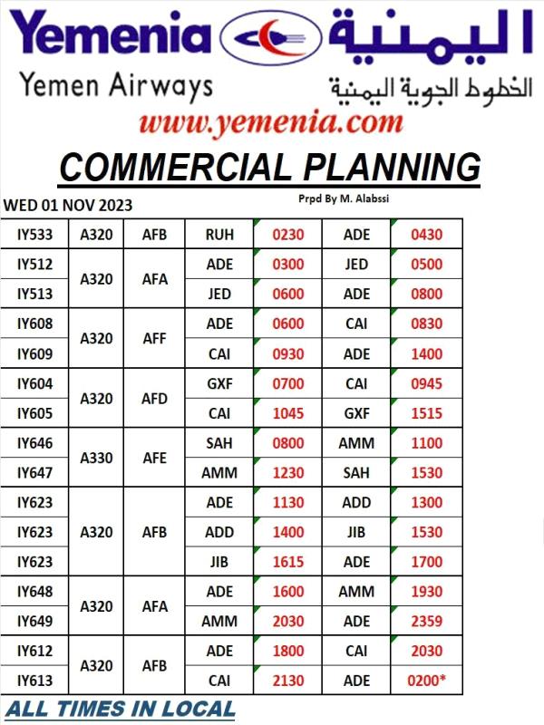 مواعيد رحلات طيران اليمنية ليوم غدٍ الأربعاء