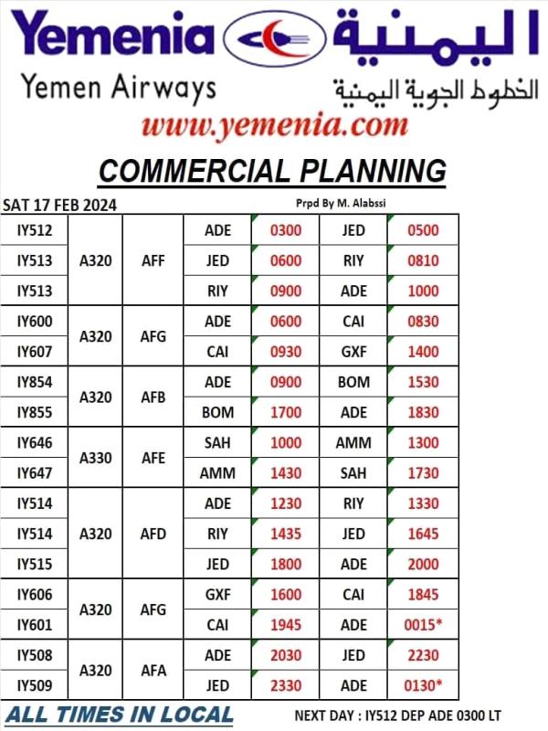 ✈️ #مواعيد_رحلات طيران اليمنية ليوم غدٍ السبت - 17 فبراير 2024م