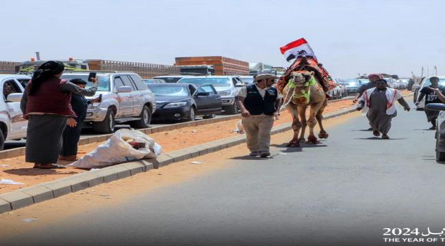 رحالة يمني على ظهر جمل يصل منفذ الوديعة في طريقه لأداء العمرة