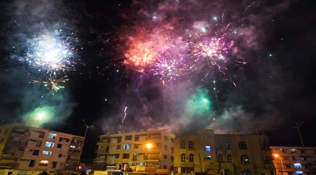 وعقب الإفطار الجماعي أطلقت اللجنة التحضيرية، الألعاب النارية من ساحة العروض وزينت سماء خور مكسر للتعبير عن الاحتفاء والفرحة بالانتصار الذي صنعته بنادق الأبطال وكان له انعكاساته المعنوية للمقاتلين في كافة جبهات في المحافظات المحررة التي تمكنت من طرد المليشيات الحوثية من أراضيها.