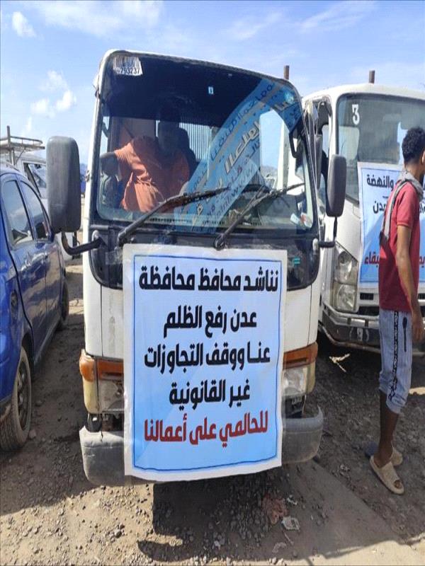 تجار مواد البناء بعدن يواصلون احتجاجاتهم السلمية وينددون باعتقال التاجر/ انيس اليافعي