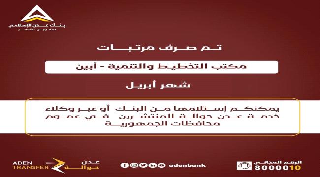 بدء صرف مرتبات مكتب التخطيط والتنمية م/ابين - لشهر أبريل