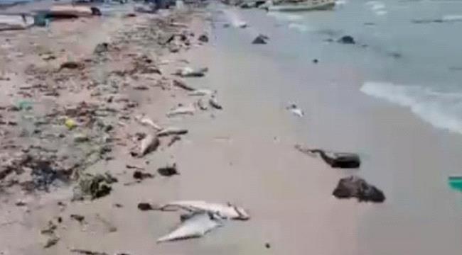 نفقت اسماك في ساحل المخا يوم امس، بكميات كبيرة.