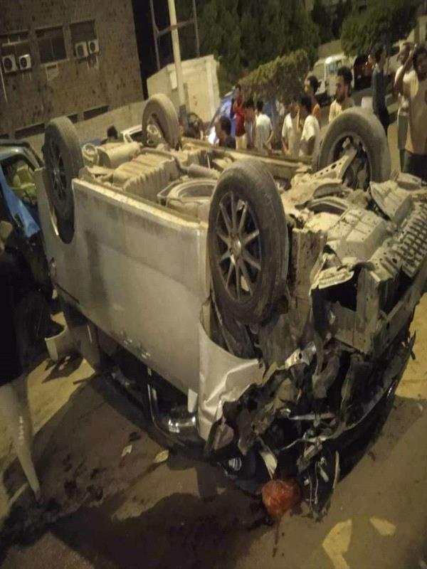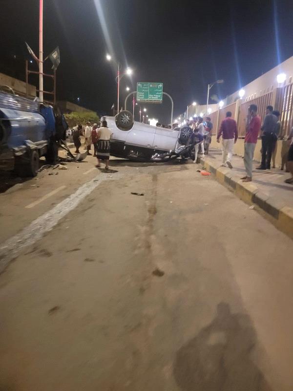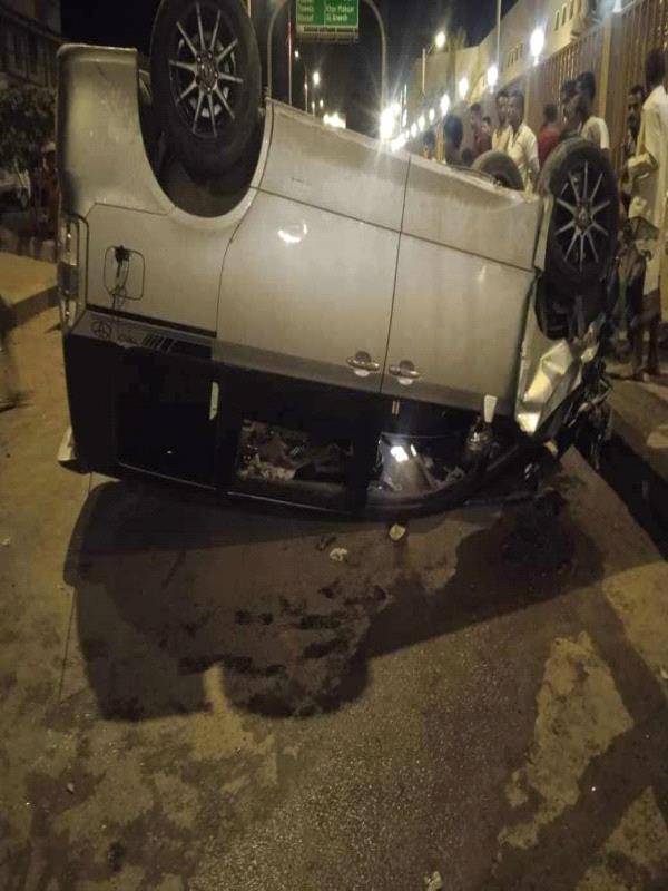 انقلاب باص فوكسي إثر حادث تصادم مع بوزة ماء بكريتر في عدن - صور