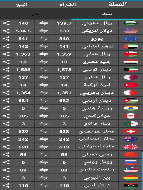 أسعار صرف العملات الاجنبية مقابل الريال اليمني اليوم في العاصمة عدن وصنعاء
