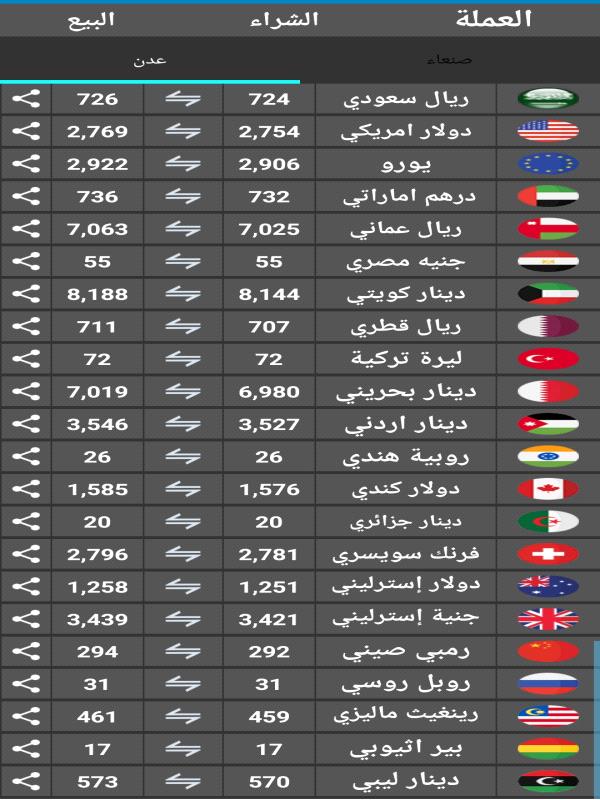 أسعار صرف العملات الاجنبية مقابل الريال اليمني اليوم الاثنين في العاصمة عدن وصنعاء.