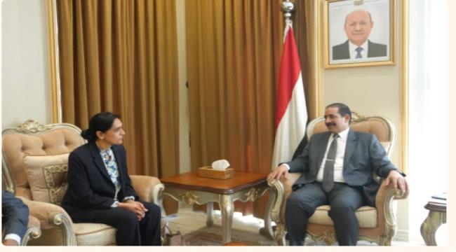 بحث وزير الداخلية، اللواء الركن إبراهيم حيدان، اليوم، مع سفيرة المملكة المتحدة لدى اليمن، عبدة شريف، تعزيز التعاون في المجال الامني.