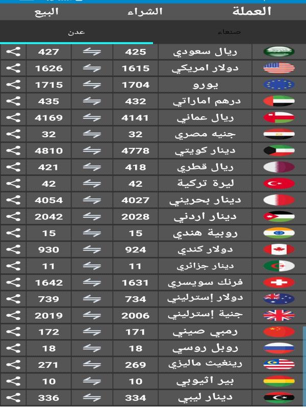 أسعار صرف العملات الأجنبية اليوم في العاصمة عدن.