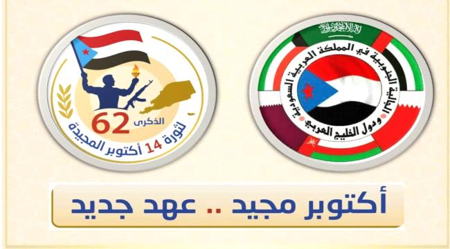 ندعوكم جميعًا إلى المشاركة الفاعلة في الإحتفال بالذكرى الـ [ 62 ] لثورة 14 أكتوبر المجيدة، التي ستشهدها كل محافظات الجنوب، والإحتشاد والمشاركه الفاعله في محافظتي الضالع وحضرموت، حيث أن هذه الذكرى العظيمة تمثل رمزًا للتضحيات التي قدمها أبناء الجنوب من أجل الحرية والاستقلال .