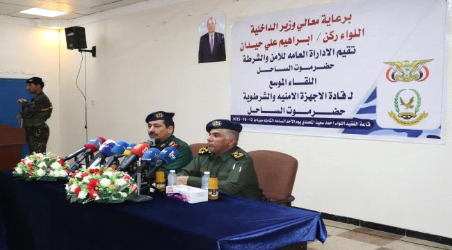 ترأّس وزير الداخلية اللواء الركن إبراهيم علي حيدان، اليوم، لقاءاً أمنياً موسّعاً بقيادات شرطة ساحل حضرموت.