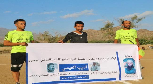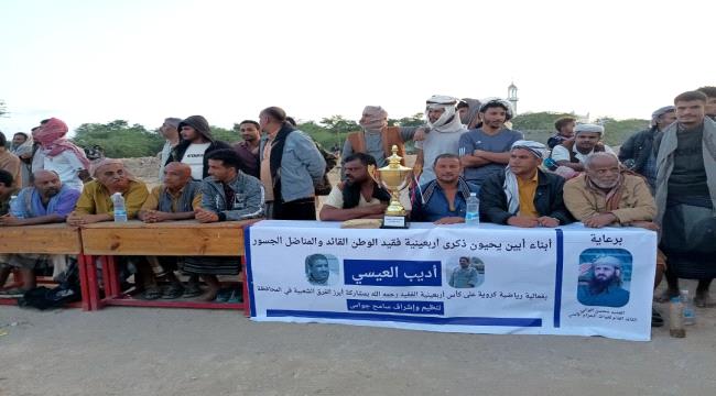 توج منتخب مودية بكأس أربعينية فقيد الوطن ، القائد والمناضل الجسور أديب العيسي (رحمه الله) بعد تغلبه على منتخب لودر بهدفين مقابل هدف في المباراة التي جمعتهما عصر اليوم الخميس على ملعب عوله الواقع في قلب مدينة مودية في إطار الفعالية الاحتفالية التي أقيمت برعاية كريمة من قبل العميد محسن الوالي القائد العام لقوات الحزام الأمني، وتنظيم وإشراف سامح جواس ، وذلك تخليدا وعرفانا بدور مهندس الوفاق الجنوبي "أبو محمد" النضالي والوطني.