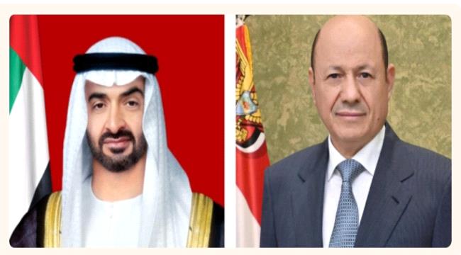 واعرب رئيس مجلس القيادة الرئاسي باسمه، واعضاء المجلس، والحكومة، والشعب اليمني عن خالص تهانيه وتمنياته لصاحب السمو الشيخ محمد بن زايد بموفور الصحة والسعادة، وللشعب الاماراتي الشقيق كل التقدم والرخاء في ظل قيادته الرشيدة.