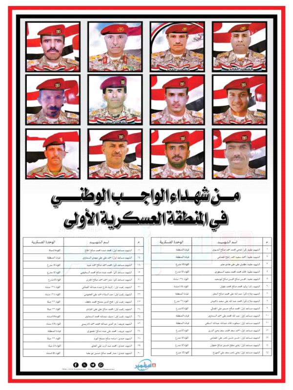 وزارة الدفاع تنشر أسماء وصور ضحايا المنطقة العسكرية الأولى في حضرموت