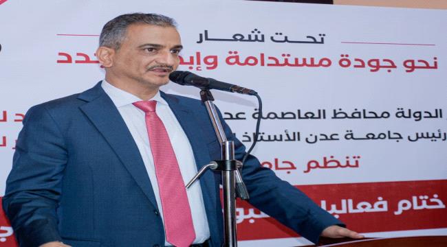 وشدد المحافظ لملس في كلمته التي القاها خلال حفل اختتام فعاليات اسبوع الجودة العالمي اليوم على أهمية استمرار تنظيم أسابيع الجودة في جامعة عدن، مثمنًا عاليًا جهود قيادة الجامعة وكافة منتسبيها في تبني هذه المبادرات النوعية التي تعزز من مكانة الجامعة محليًا وإقليميًا، وتحقق التكامل في الأدوار بين الجامعة والسلطة المحلية، مؤكدًا دعم السلطة المحلية لهذه الطموحات في جامعة عدن، باعتبارها منبعًا للثورات العلمية والابتكار والتعليم، مبينًا أن المحافظة تعول كثيرًا على مخرجات الجامعة للاستفادة منها في مختلف مجالات التنمية.