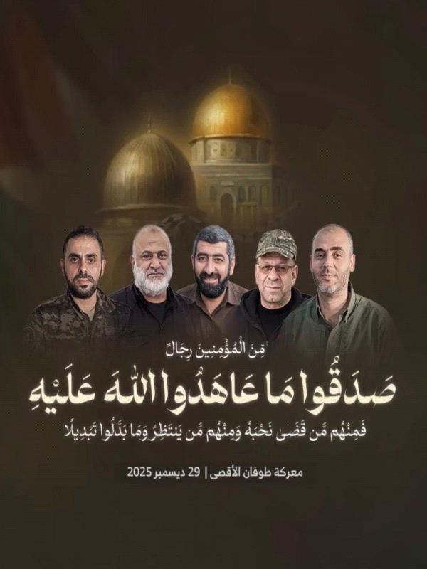 أعلنت كتائب القسام الجناح العسكري لحركة حماس الاثنين، بشكل رسمي عن مقتل الناطق باسمها حذيفة الكحلوت المعروف بـ"أبو عبيدة" وقائد أركانها محمد السنوار إضافة إلى محمد شبانة ورائد سعد وابو عمر السوري.