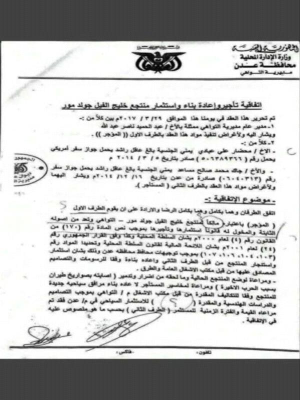 تأجير منتجع خليج الفيل لأحد أقارب عيدروس الزبيدي.