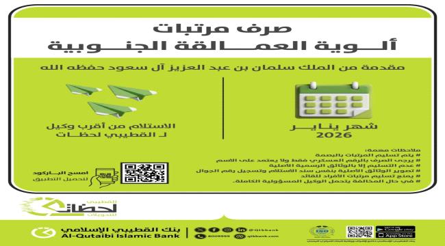 بدأت اليوم عملية صرف مرتبات ألوية العمالقة الجنوبية المقدمة من الملك سلمان بن عبدالعزيز لشهر- يناير 2026
