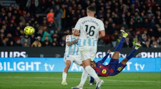ففي الدقيقة 73، ومع تقدم برشلونة بهدفين نظيفين، قدم جمال لحظة فنية استثنائية حين ارتقى لكرة عرضية دقيقة من زميله داني أولمو داخل منطقة الجزاء، وسددها بمقصية هوائية مذهلة سكنت شباك الخصم، معلنا الهدف الثالث للفريق الكتالوني.