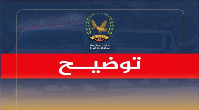وتدعوا شرطة تعز جمبع المواطنين ووسائل الإعلام ورواد التواصل الاجتماعي إلى تحري الدقة والمصداقية والاعتماد على المصادر الرسمية قبل نشر أو تداول أي معلومات، محذّرة من أن نشر أو تداول أي معلومات مظللة يُعد جريمة يُعاقب عليها القانون.