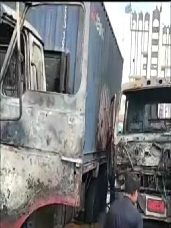 أفادت مصادر محلية وميدانية بأن النيران اشتعلت في الساعات الأولى من الصباح بمواقف انتظار الشاحنات، حيث ساعدت الظروف المحيطة على اتساع رقعة اللهب لتطال المركبات المجاورة.