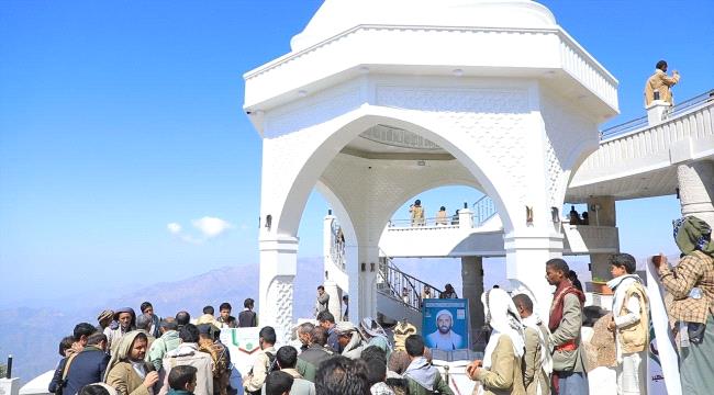 ومنذ إعلان دفنه بعد تسلم جثمانه من الرئيس الأسبق علي عبدالله صالح عام 2013، عملت الجماعة على تحويل الموقع إلى مزار دائم، وكانت قد دفنته في يونيو من العام نفسه داخل قبة كبيرة بُنيت بشكل هندسي سداسي، ومرصّعة بأنواع وأشكال مختلفة من الأحجار، في حين رُصّعت المساحة المجاورة بأفخر أنواع السيراميك.