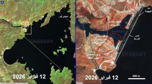 كشفت صور حديثة التقطتها الأقمار الصناعية عن تعثر تقني وتذبذب في معدلات تشغيل سد النهضة الإثيوبي. أظهرت أحدث البيانات والصور الرادارية أن السد يمر بمرحلة تشغيل "ضعيفة" منذ إعادة تفعيل بعض توربيناته في نوفمبر (تشرين الثاني) الماضي، عقب توقف كامل استمر لأسابيع.