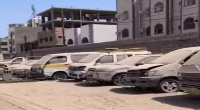 سيارات محتجزة في حوش وحدة حماية الأراضي عدن