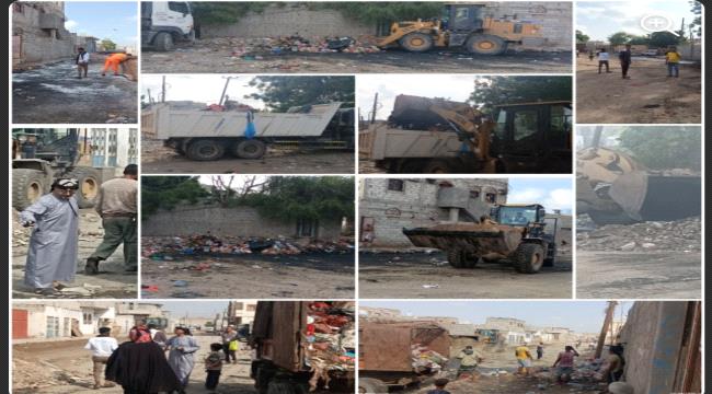 رفع المخلفات وقشط الأتربة في حملة نظافة بالممدارة بعدن