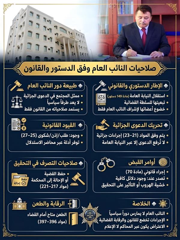 واختتم تصريحه بالتأكيد على أن “إقحام النيابة العامة أو النائب العام في التجاذبات السياسية يمثل مساساً باستقلال القضاء ومخالفة لمبدأ الفصل بين السلطات”، داعياً إلى اللجوء إلى الطرق القانونية للطعن في أي قرارات أو إجراءات، بدلاً من طرحها عبر وسائل الإعلام أو مواقع التواصل الاجتماعي.