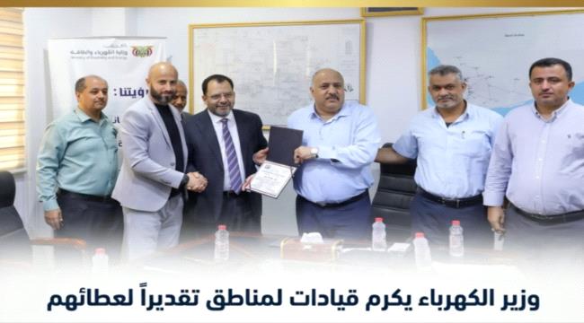 وشمل التكريم كلاً من:سفيان بلحاف – مندوب المؤسسة العامة للكهرباء في محافظة المهرة وعبدالله الشعبي – مدير عام المنطقة الثانية لكهرباء عدن وماجد صالح – مدير عام المنطقة الثالثة لكهرباء عدن