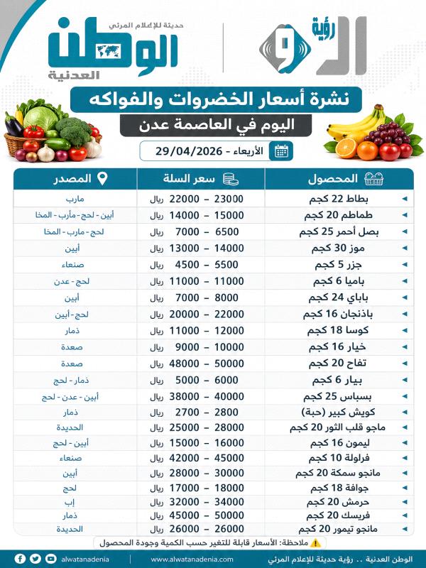 الأربعاء - 29 أبريل 2026 - الساعة 01:15 م بتوقيت اليمن ،،،