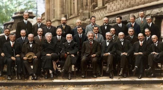 صورة للعلماء المجتمعين خلال مؤتمر سولفاي سنة 1927