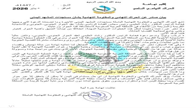 تابع الحراك التهامي والمقاومة التهامية الباسلة مستجدات المشهد اليمني الأخيرة وما تضمنته الدعوة التي وجهها فخامة الرئيس الدكتور رشاد العليمي رئيس مجلس