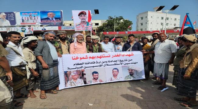 شارك أبناء وأعيان ووجهاء من قبيلة العقارب بمنطقة بئر احمد مع إخوانهم من أبناء الصبيحة حشدهم في ساحة العروض بالعاصمة عدن. وقال العقارب في وقفتهم أن مات
